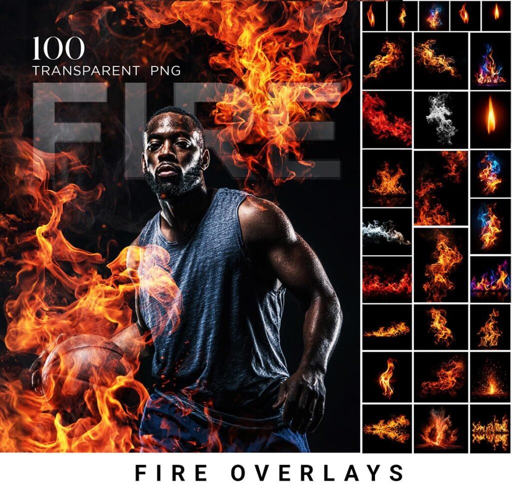100 Fire Overlay PNG & JPEG | Transparent Flames Effect | Fire Clipart for Photoshop | Digital Fire Overlay Bundle for Creatives