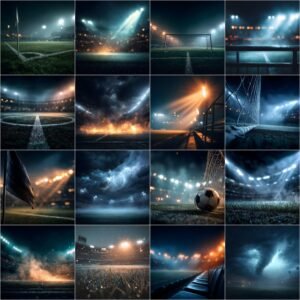 Create powerful, cinematic sports portraits with this bundle of 125 soccer digital backdrops designed for professional photographers and photo editors. Featuring stadium lights, fog, smoke, dust, rain, fire, and dramatic lighting effects, these backgrounds are perfect for sports posters, senior banners, team photos, and social media graphics. Each high-resolution backdrop is crafted for easy use in Photoshop and other editing software, helping you produce studio-quality composites in minutes. Ideal for school sports, leagues, and professional projects, this collection gives you everything you need to deliver high-impact, market-ready sports images.