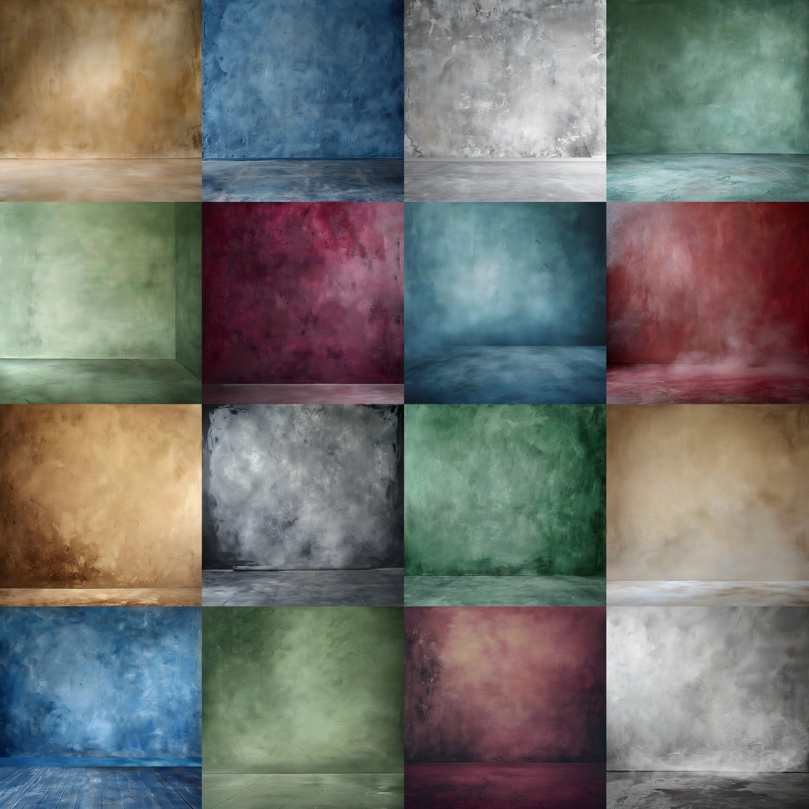 This professional collection includes 60 Old Master–inspired digital backdrops featuring textured studio walls with matching floors, designed specifically for fine art photographers, portrait artists, and professional photo editors who want rich, classic results without building physical sets. Each backdrop is carefully crafted with painterly depth, subtle grunge texture, and realistic tonal variations to replicate the look of traditional hand-painted studio canvases.