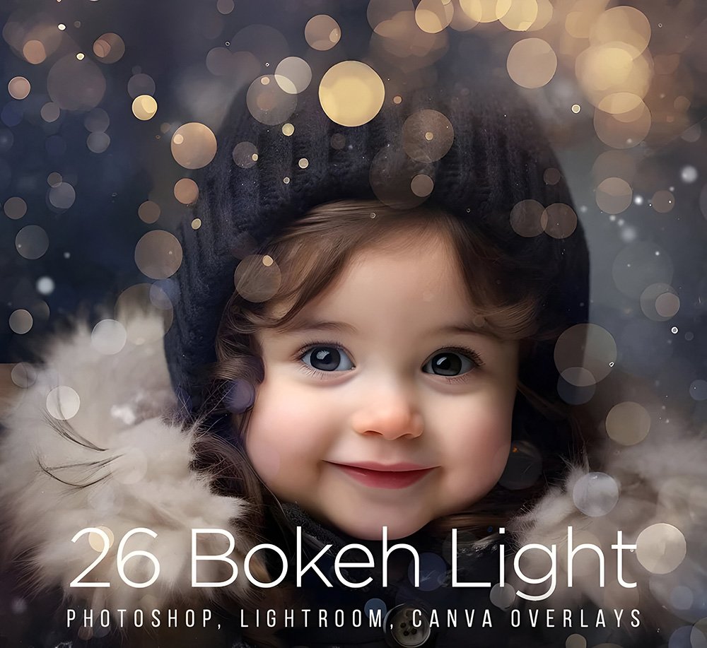 26 Bokeh Light Photoshop Overlays, Christmas overlays a versatile set of digital assets designed to infuse your photographs and digital designs with enchanting, ethereal, and colorful bokeh effects. These overlays add a touch of magic to your visual projects, creating captivating and atmospheric compositions.