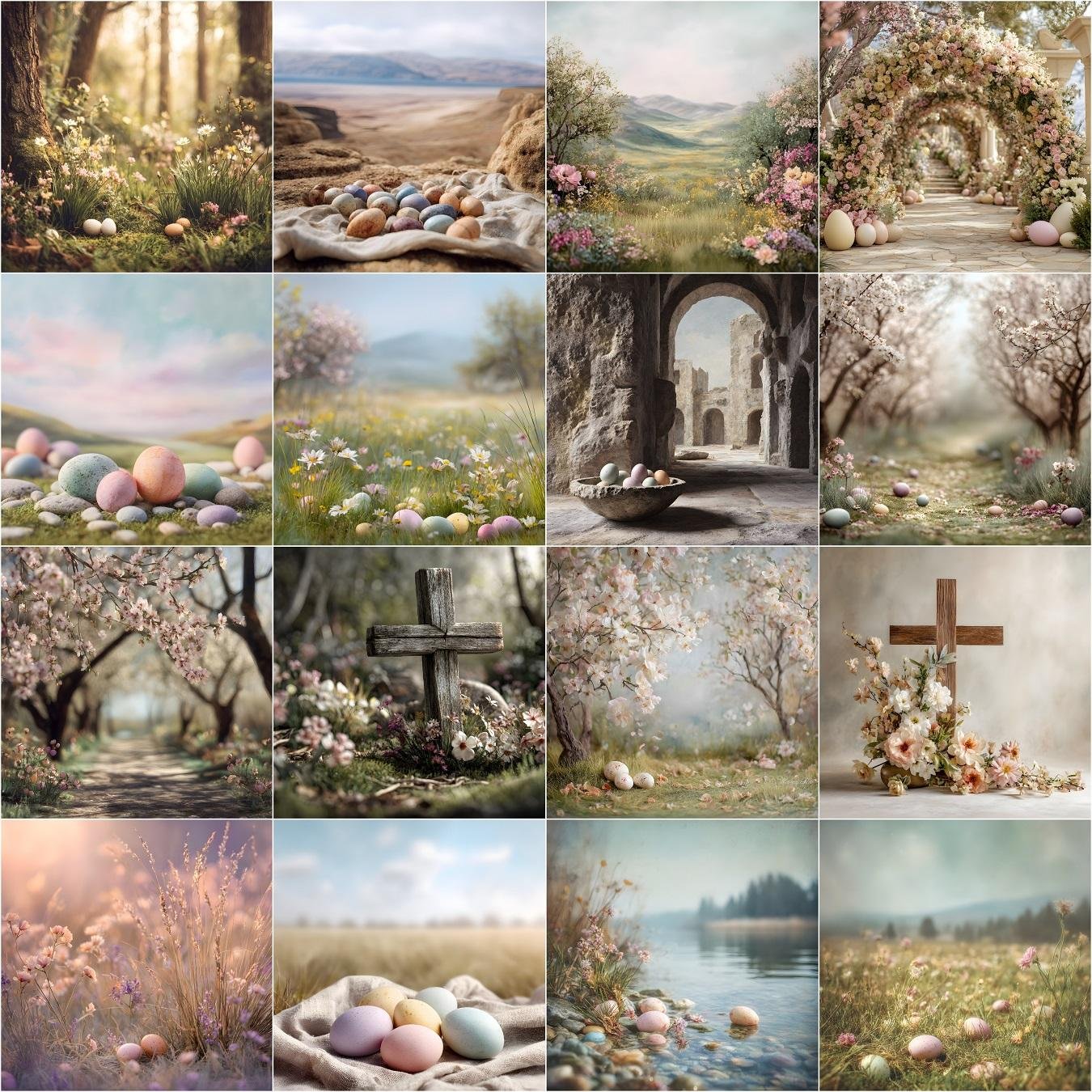 This 50-piece Easter digital backdrop bundle features high-resolution outdoor fine-art pastel backgrounds perfect for photography, Photoshop composites, portraits, newborn, family, maternity, and kids’ Easter sessions. Each backdrop is crafted with realistic depth of field and natural ground scale for full-body posing and creative editing workflows. The collection includes a variety of spring-inspired settings from floral garden arches and church courtyards to serene landscapes and symbolic Easter scenes. Compatible with Photoshop, and other editor software, these backdrops help photographers and creatives produce stunning seasonal imagery effortlessly. Ideal for professional shoots and hobbyists alike, this versatile bundle brings timeless, dreamy spring vibes to your projects.